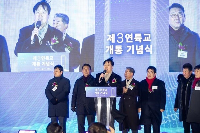 | ▲강범석 인천 서구청장이 지난 5일 열린 제3연륙교 개통식에서 축사를 하고 있다. /인천 서구청 홈페잉지 |